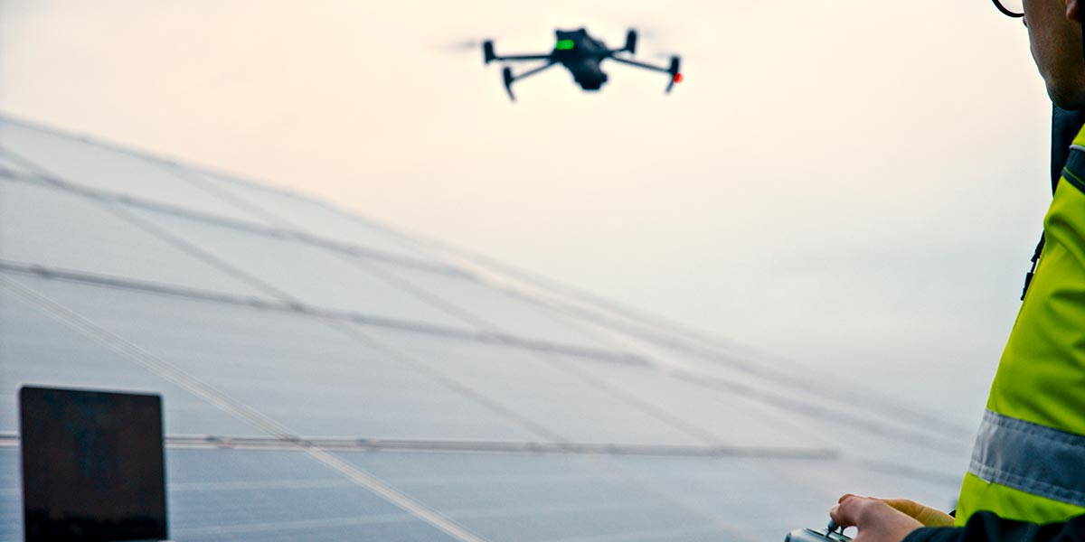 Thermografische Drohnenanalyse zur schnellen Identifikation von Modul- und Systemfehlern.